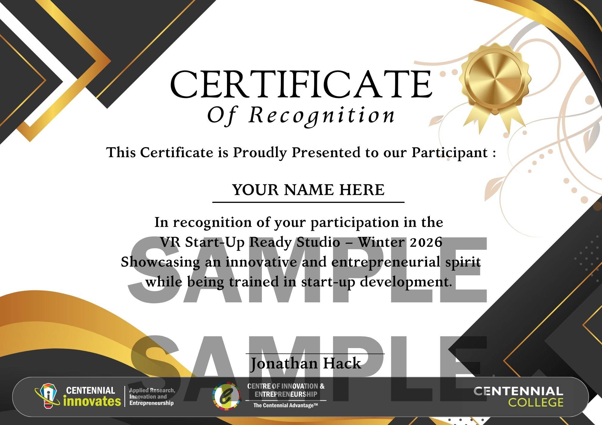 🌟 Official Centennial College Certificate in VR Start-Up Readiness